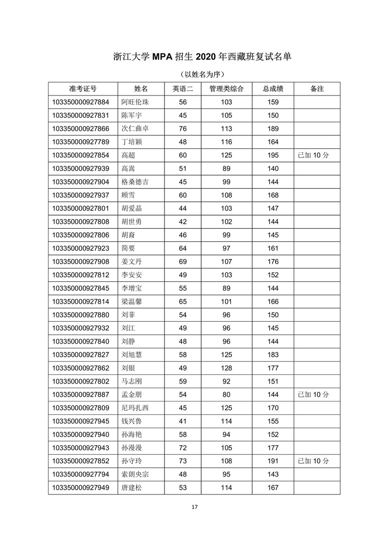 根据“浙江大学公共管理学院2020年硕士研究生复试录取工作方案”,农村发展(MAE)、公共管理(MPA)复试名单如下: