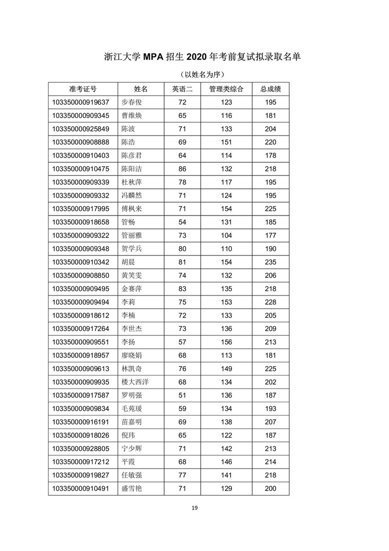 据悉,浙江大学公共管理学院2020年硕士研究生招生MPA、MAE复试考生名单已发布,聚创浙大考研为你整理如下内容: