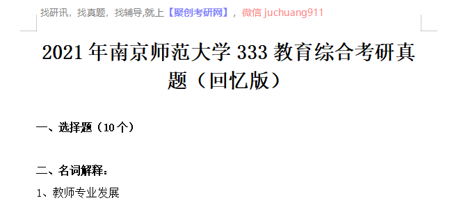 完整版请下载附件:2021年南京师范大学333教育综合考研真题(回忆版)