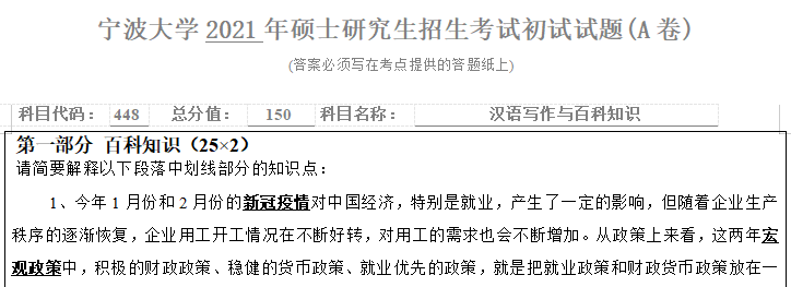 完整版请下载附件:2021年宁波大学448汉语写作与百科知识(A卷)考研真题(完整版)