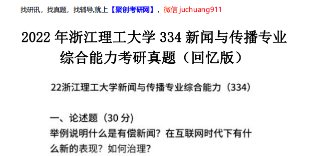 完整版请下载附件:2022年浙江理工大学334新闻与传播专业综合能力考研真题(回忆版)