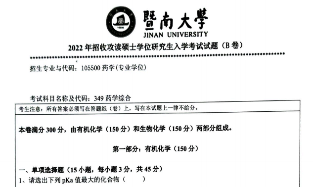 完整版请下载附件:2022年暨南大学349药学综合考研真题(完整版)