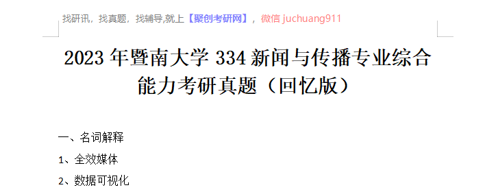 完整版请下载附件:2023年暨南大学334新闻与传播专业综合能力考研真题(回忆版)