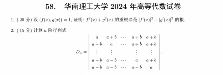 完整版请下载附件:2024年华南理工大学823高等代数考研真题(回忆版)