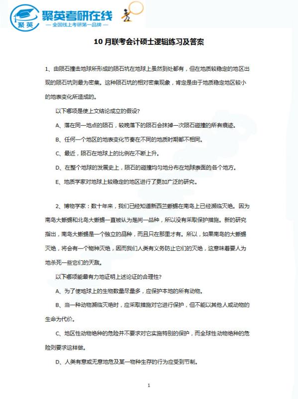 以上是聚创考研网为考生整理的"2015在职会计真题:逻辑练习及答案"的相关考研信息,希望对大家考研备考有所帮助! 备考过程中如有疑问,也可以添加老师微信juchuang911进行咨询。