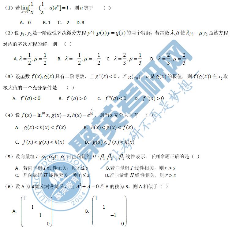聚英考研网为大家搜集整理了2010年全国硕士研究生入学考试数学三试题,部分内容如下: