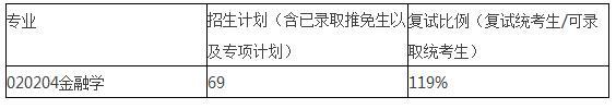 中国金融研究中心2017年硕士研究生各专业本次复试招生计划数及复试比例如下: