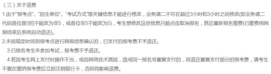 ②、未按规定时间到报考点进行网报信息确认的,已支付的报考费不予退还。