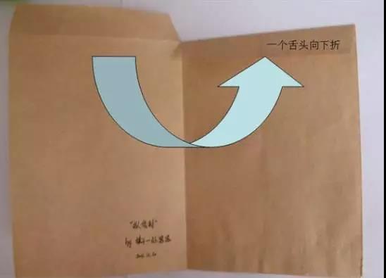 2.其中一个舌头向下折,藏进信封内部,对折信封,于侧边底边封口。