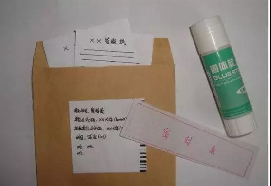 3.一般装入试题册,答题纸,机读卡,和另一个留给考生自己用的封条,此封条很薄很轻,易吹跑弄丢,一定保留好!