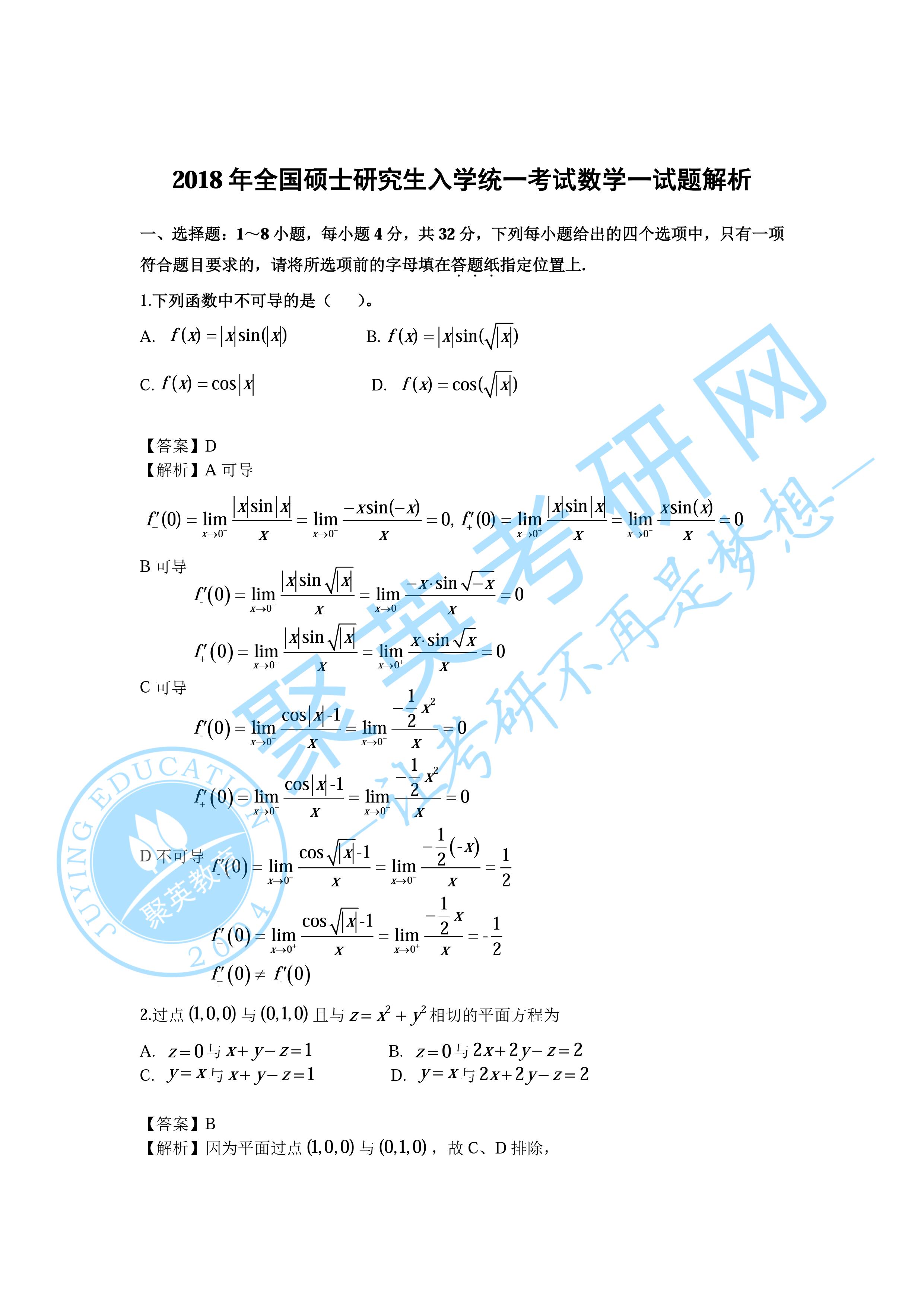 以上是聚创考研网为考生整理的"2018年硕士研究生入学考试考研数学一真题及答案解析"的相关考研信息,希望对大家考研备考有所帮助! 备考过程中如有疑问,也可以添加老师微信juchuang911进行咨询。