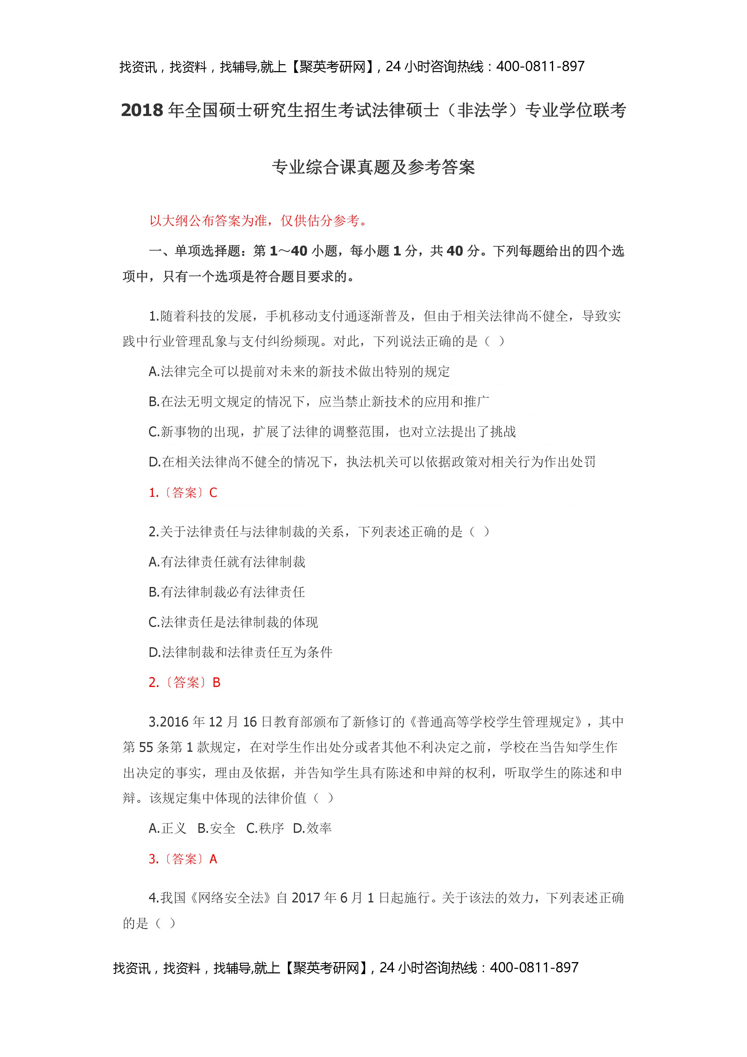 以上是聚创考研网为考生整理的"2018年全国硕士研究生招生考试法律硕士 (非法学)专业学位联考专业综合课真题及参考答案"的相关考研信息,希望对大家考研备考有所帮助! 备考过程中如有疑问,也可以添加老师微信juchuang911进行咨询。