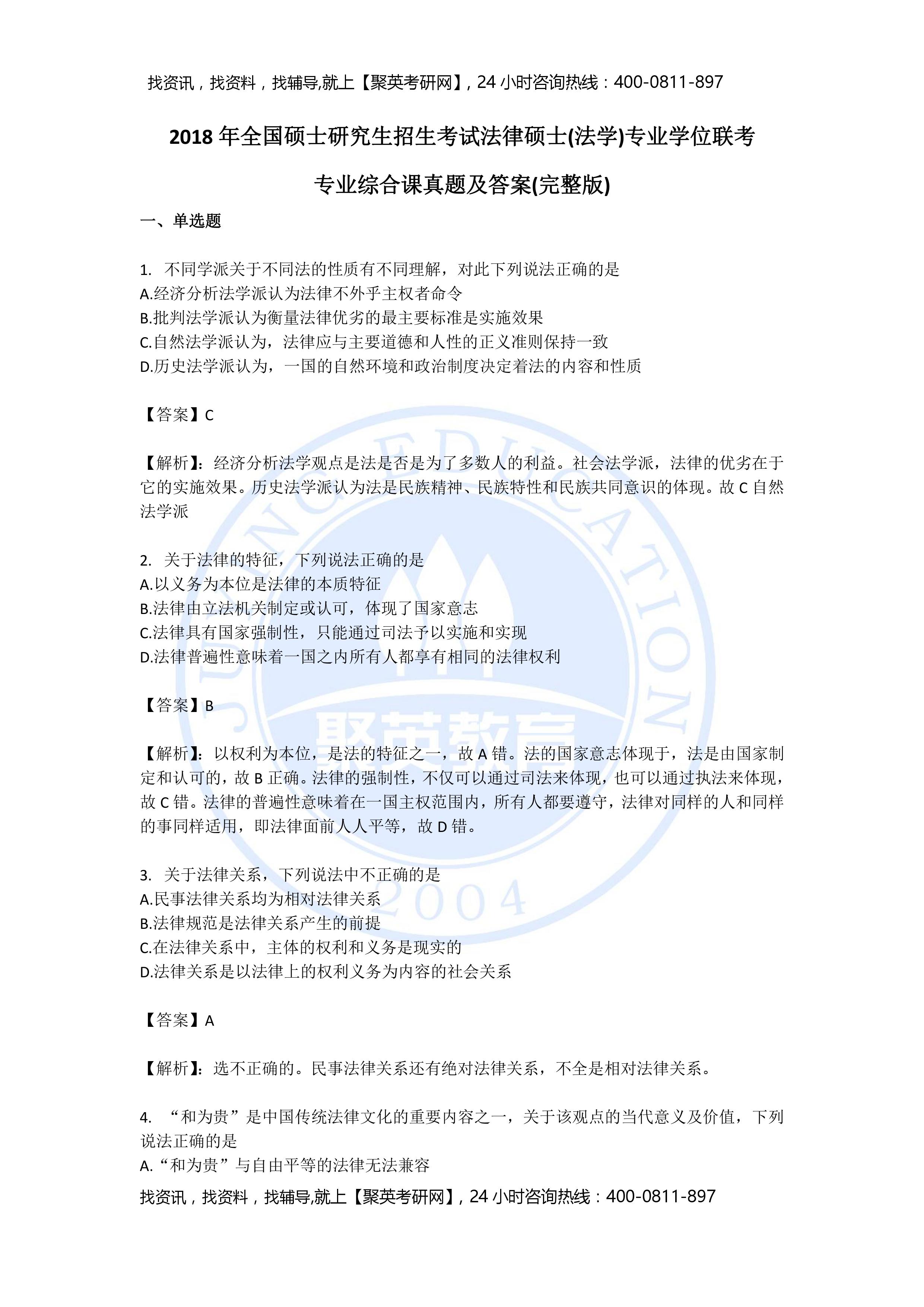 以上是聚创考研网为考生整理的"2018年全国硕士研究生招生考试法律硕士 (法学)专业学位联考专业综合课真题及参考答案"的相关考研信息,希望对大家考研备考有所帮助! 备考过程中如有疑问,也可以添加老师微信juchuang911进行咨询。