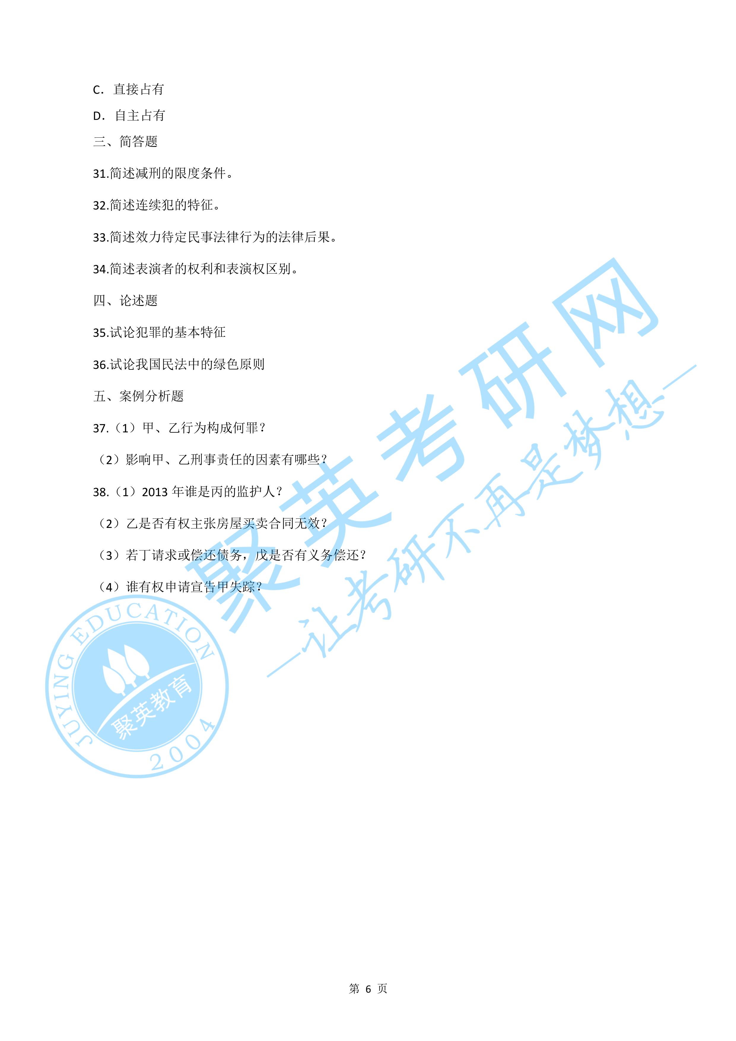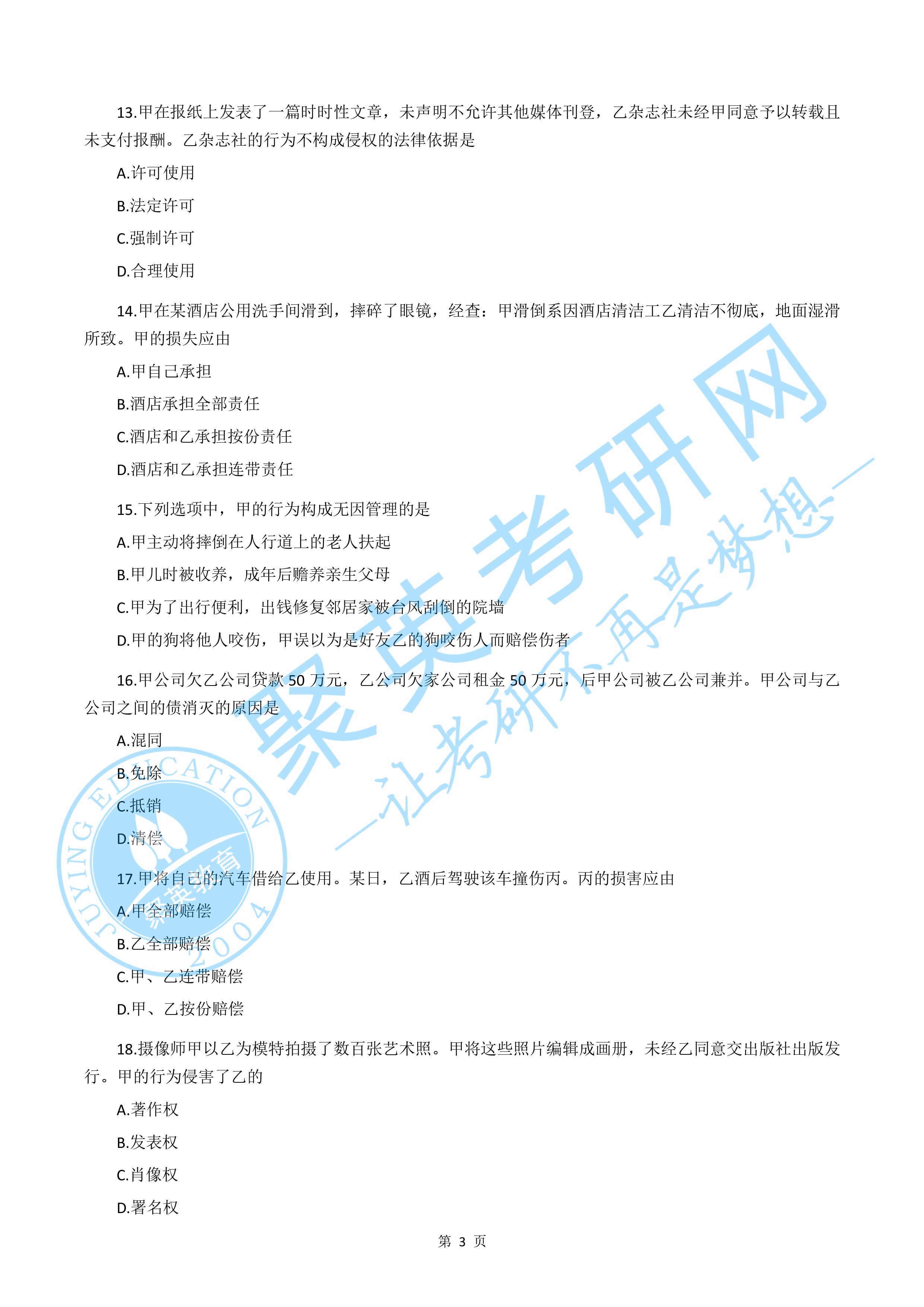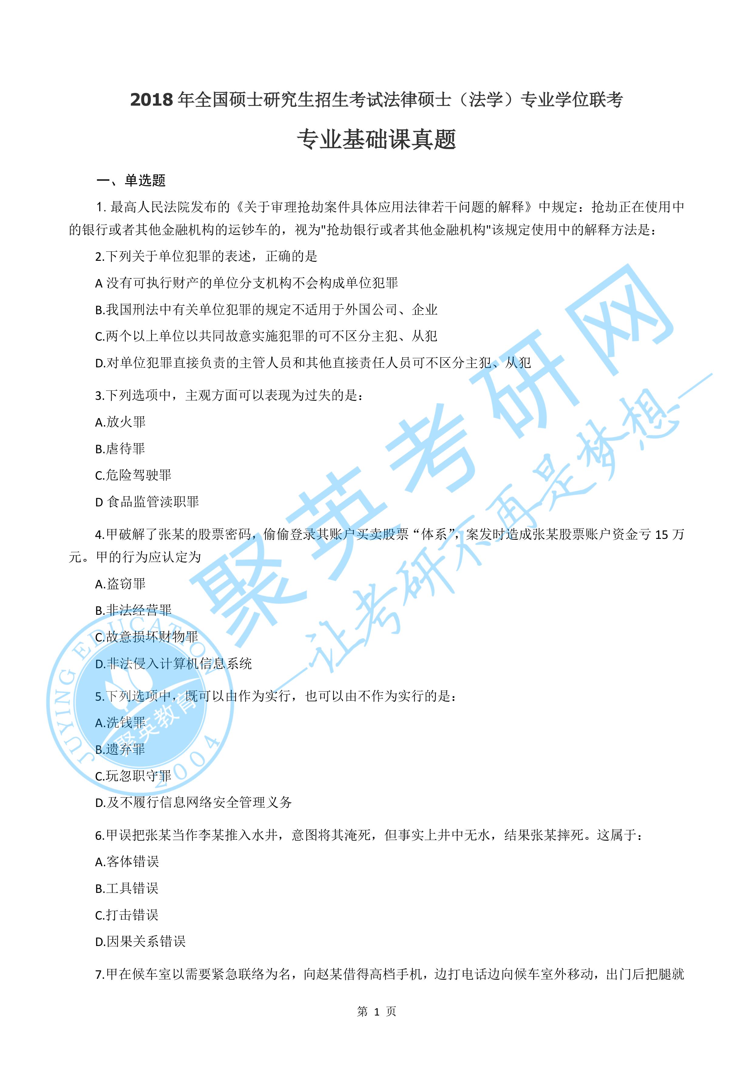 以上是聚创考研网为考生整理的"2018年全国硕士研究生招生考试法律硕士 (法学)专业学位联考专业基础课真题"的相关考研信息,希望对大家考研备考有所帮助! 备考过程中如有疑问,也可以添加老师微信juchuang911进行咨询。