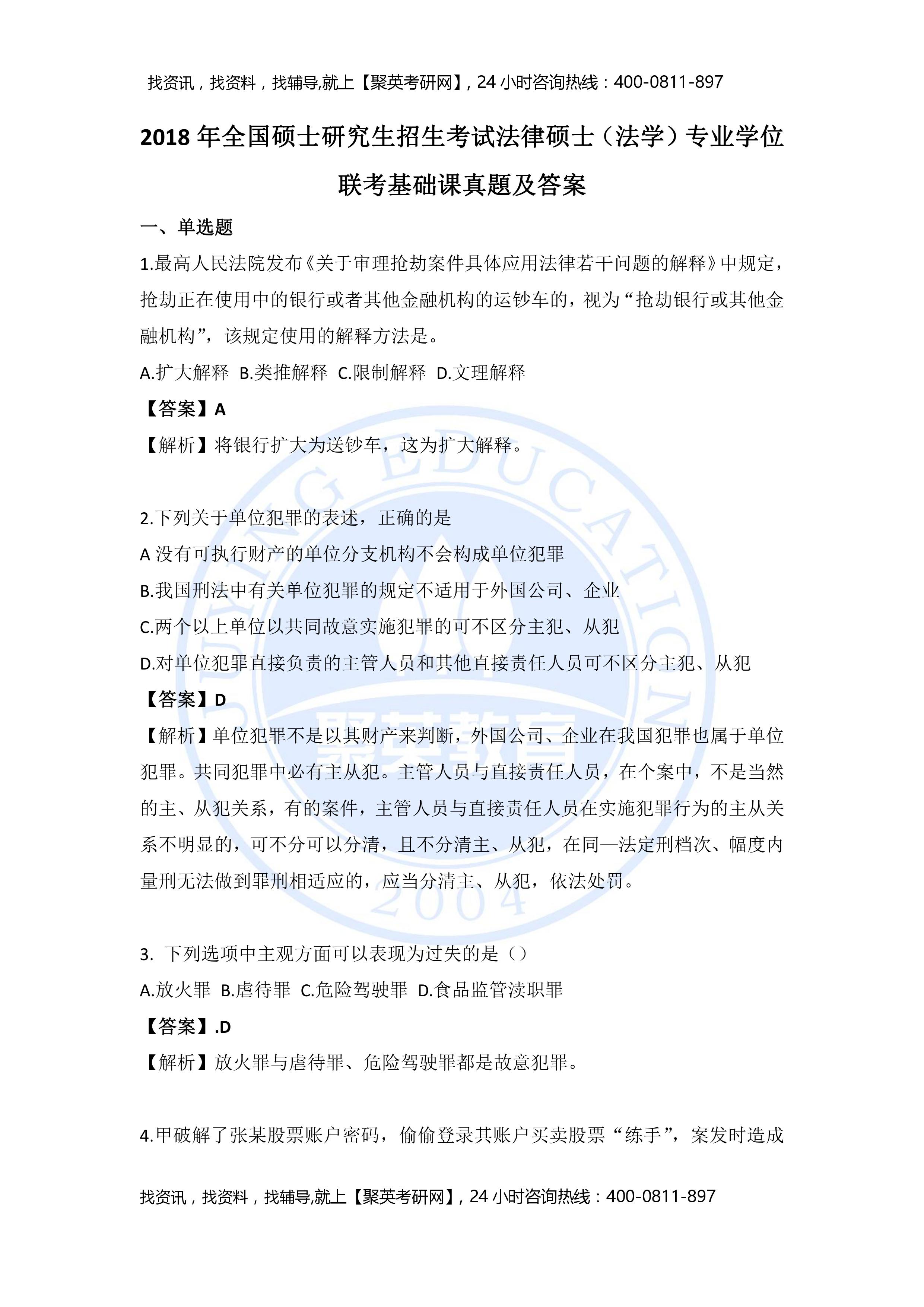 以上是聚创考研网为考生整理的"2018年全国硕士研究生招生考试法律硕士 (法学)专业学位联考专业基础课真题及参考答案"的相关考研信息,希望对大家考研备考有所帮助! 备考过程中如有疑问,也可以添加老师微信juchuang911进行咨询。