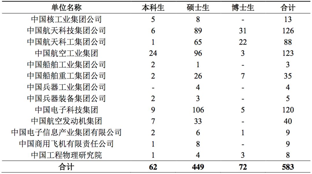2017 届毕业生到国防科技工业单位(部分)就业情况