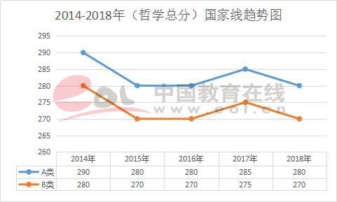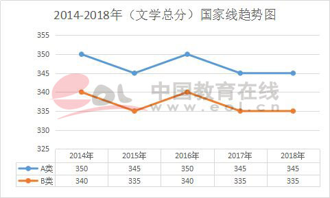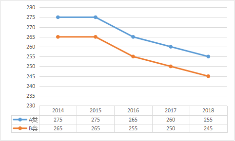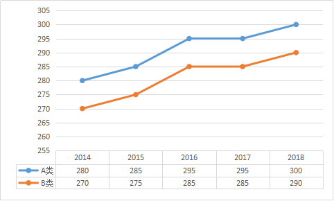 二、学术学位考研国家线趋势图: