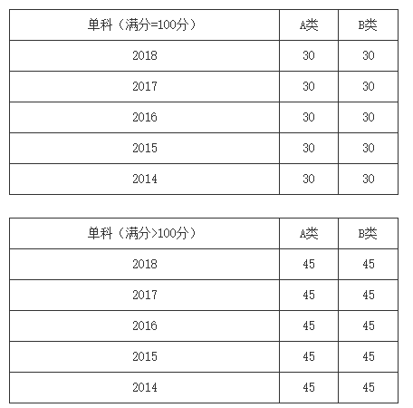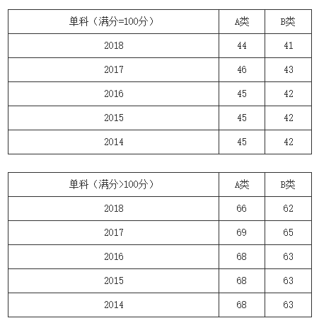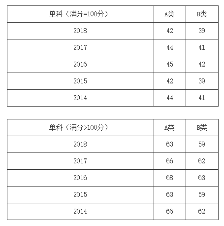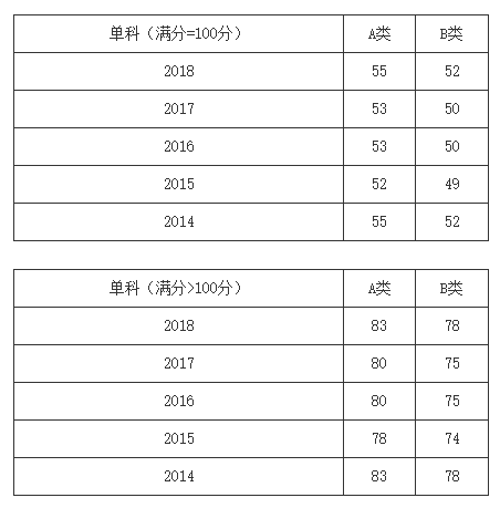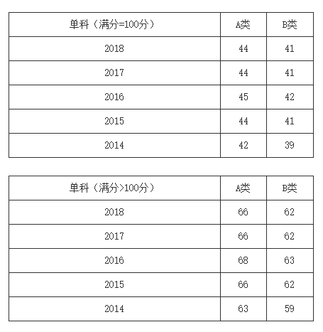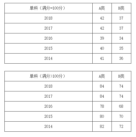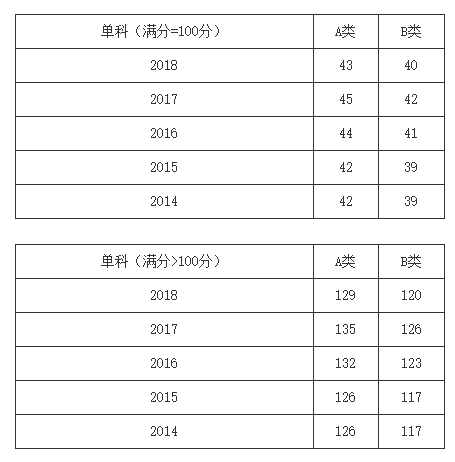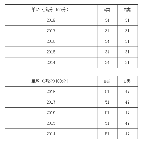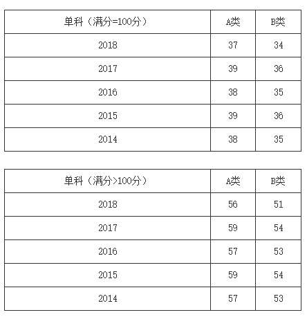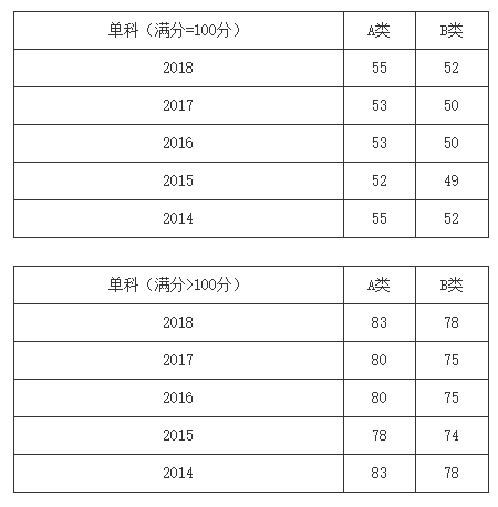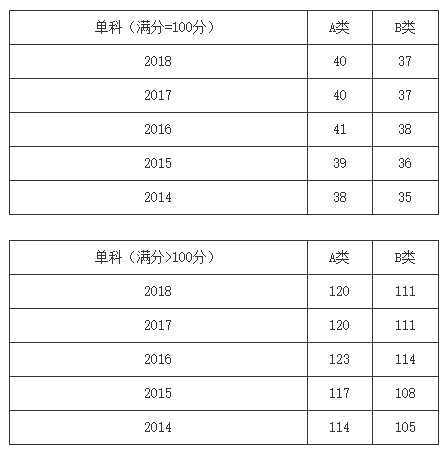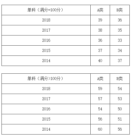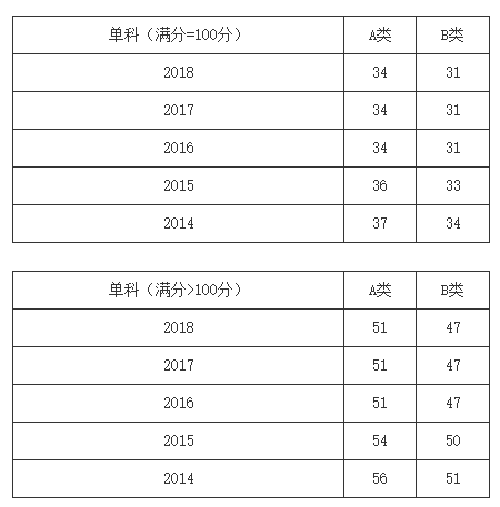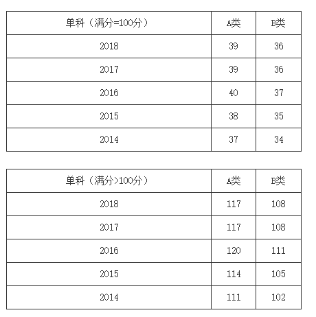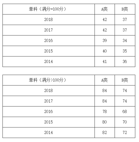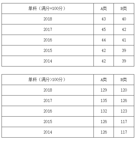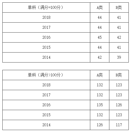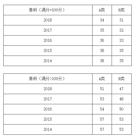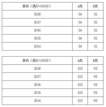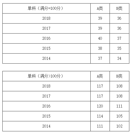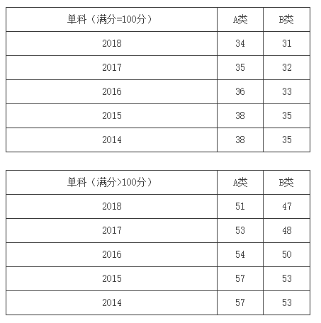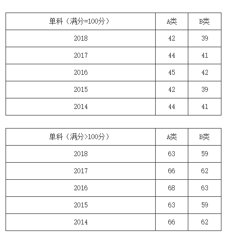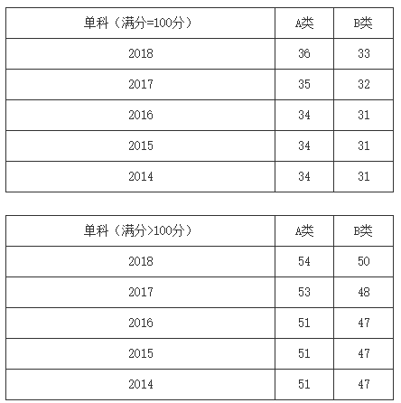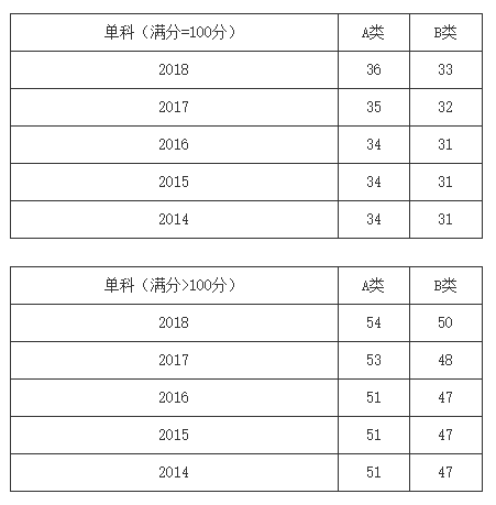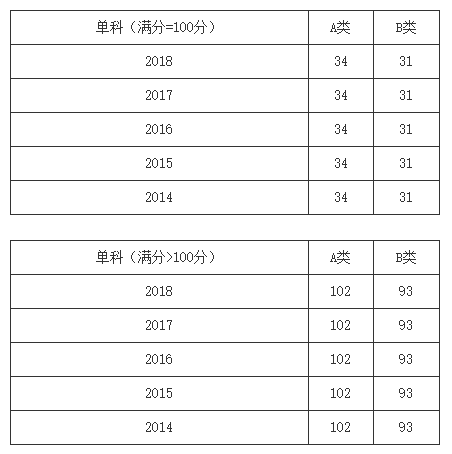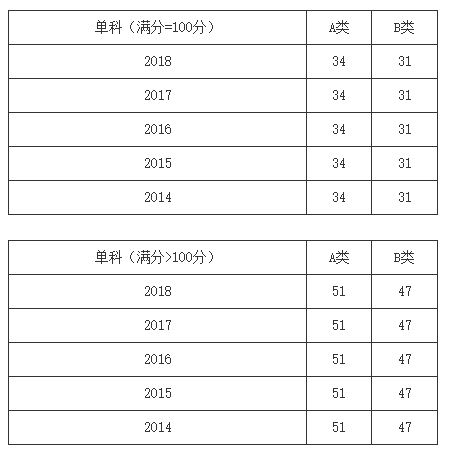 一、34所自划线学校2013-2018年考研分数线要求: