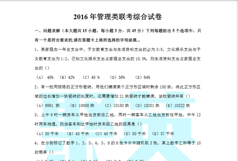 聚英考研网整理了2016考研管理类联考综合能力真题及答案解析,部分内容如下:更多内容请下载PDF附件