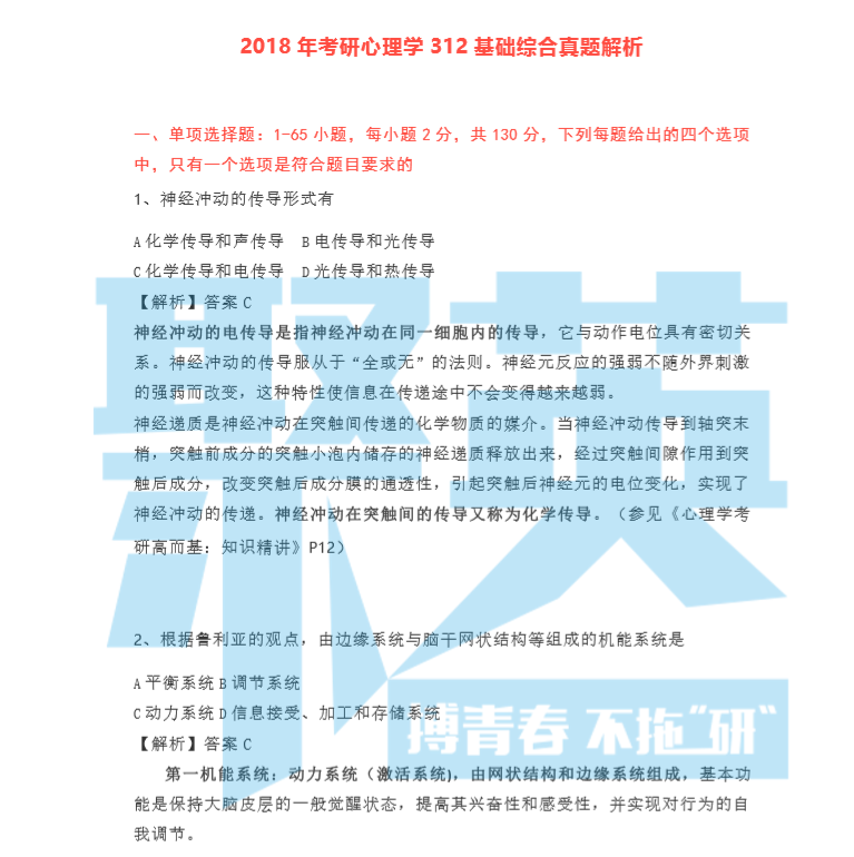 聚英考研信息网整理了2018年心理学基础综合真题答案及解析,部分内容如下:更多内容请下载PDF附件