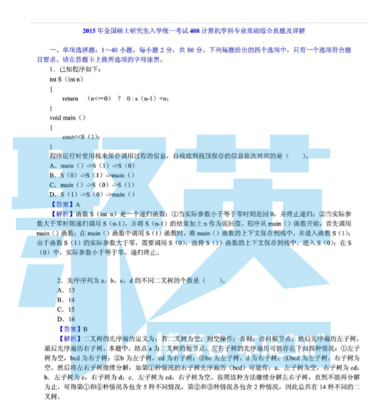 聚英考研信息网整理了2015年计算机基础综合真题答案及解析,部分内容如下:更多内容请下载PDF附件