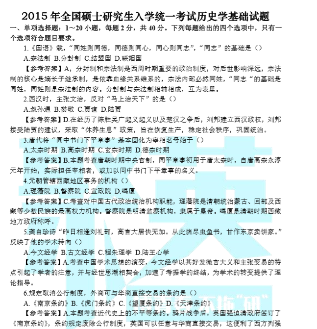 以上是聚创考研网为考生整理的"2015年考研历史学基础综合真题答案及解析"的相关考研信息,希望对大家考研备考有所帮助! 备考过程中如有疑问,也可以添加老师微信juchuang911进行咨询。