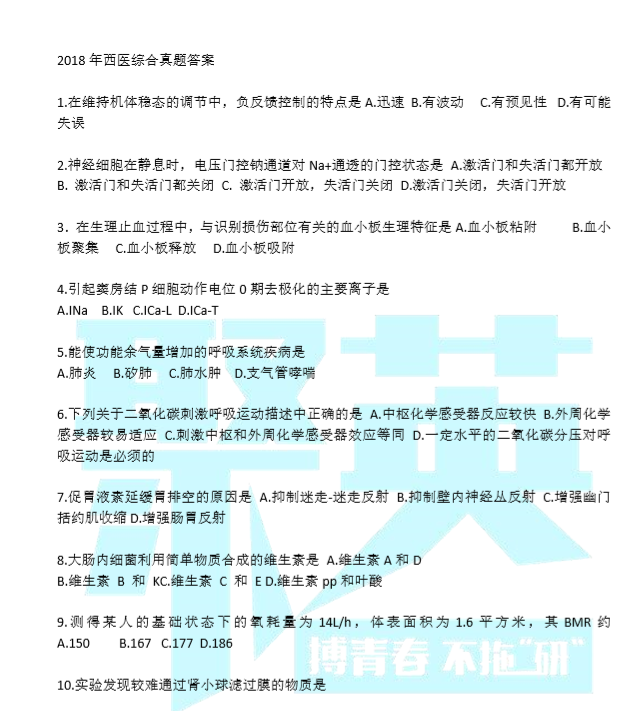 聚英考研信息网整理了2018年考研西医基础综合真题及答案,部分内容如下:更多内容请下载PDF附件