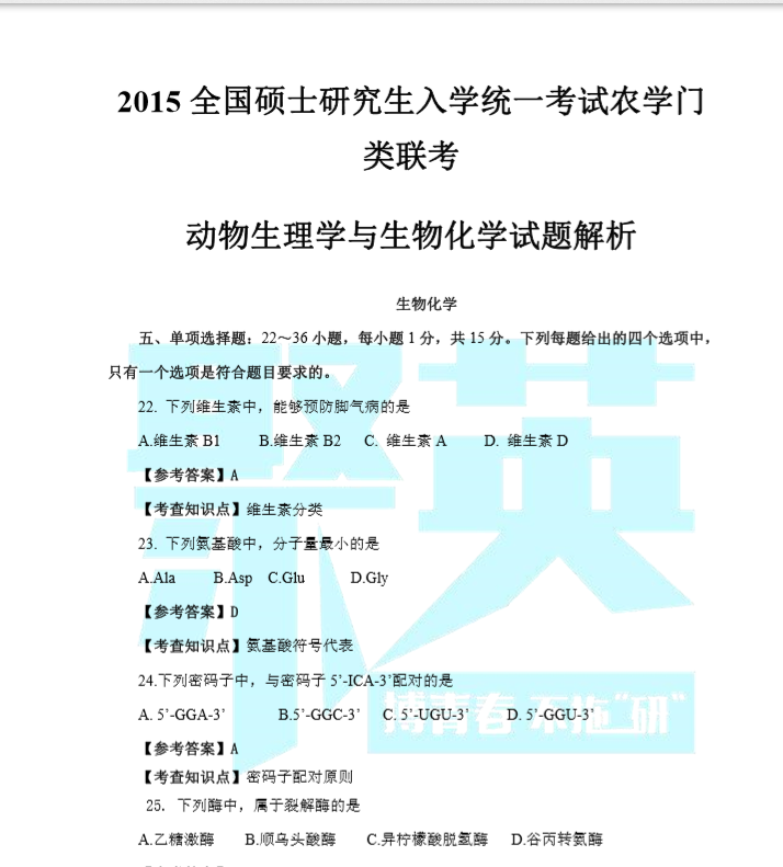 以上是聚创考研网为考生整理的"2015年考研农学门类基础综合真题答案及解析"的相关考研信息,希望对大家考研备考有所帮助!