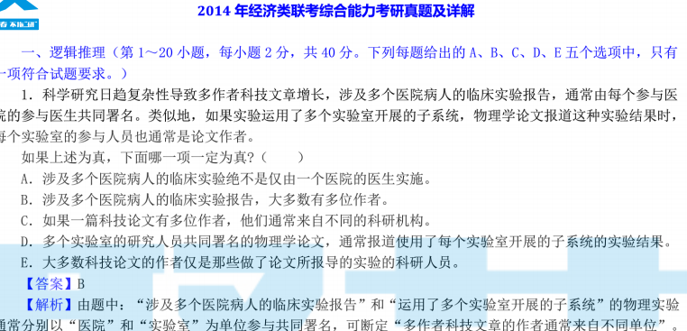 以上是聚创考研网为考生整理的"2014年考研经济类联考综合能力真题答案及解析(逻辑+数学部分+写作)"的相关考研信息,希望对大家考研备考有所帮助!