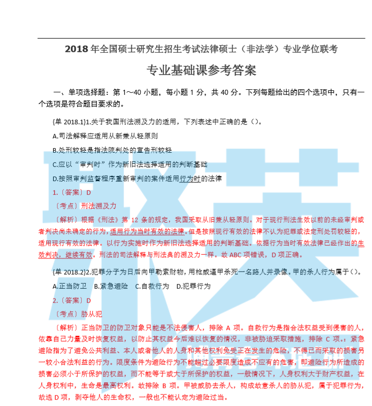 以上是聚创考研网为考生整理的"2018年考研法律硕士(非法学)真题答案及解析(基础+综合)"的相关考研信息,希望对大家考研备考有所帮助!