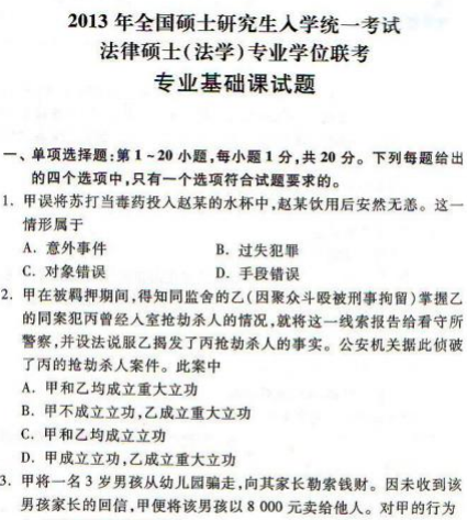以上是聚创考研网为考生整理的"2013年考研法律硕士(法学)真题答案及解析(基础+综合)"的相关考研信息,希望对大家考研备考有所帮助!