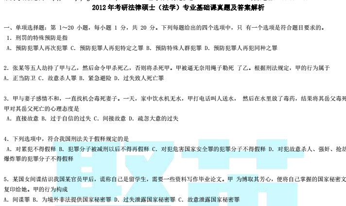 以上是聚创考研网为考生整理的"2012年考研法律硕士(法学)真题答案及解析(基础+综合)"的相关考研信息,希望对大家考研备考有所帮助!