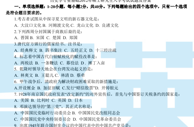 以上是聚创考研网为考生整理的"2012年考研历史学基础综合真题答案及解析"的相关考研信息,希望对大家考研备考有所帮助! 备考过程中如有疑问,也可以添加老师微信juchuang911进行咨询。