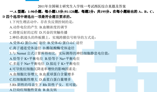 聚英考研信息网整理了2011年考研西医基础综合真题及答案解析,部分内容如下:更多内容请下载PDF附件