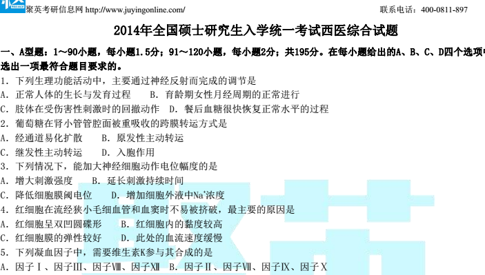 聚英考研信息网整理了2014年考研西医基础综合真题及答案解析,部分内容如下:更多内容请下载PDF附件