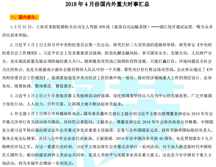 完整版附件可下载:2018年4月份国内外重大时事汇总.pdf