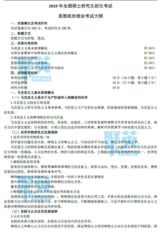 据悉,2019考研政治大纲原文(图片版)已公布,聚英考研信息网为您整理内容如下: