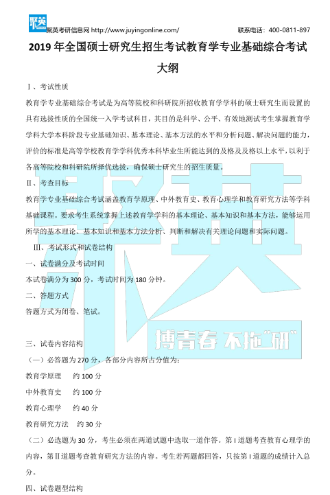 更多内容请点击链接下载附件查看:2019年全国硕士研究生招生考试教育学专业基础综合考试大纲