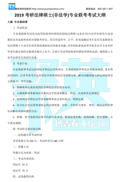 以上是聚创考研网为考生整理的"2019年考研法律硕士(非法学)大纲原文内容"的相关考研信息,希望对大家考研备考有所帮助! 备考过程中如有疑问,也可以添加老师微信juchuang911进行咨询。