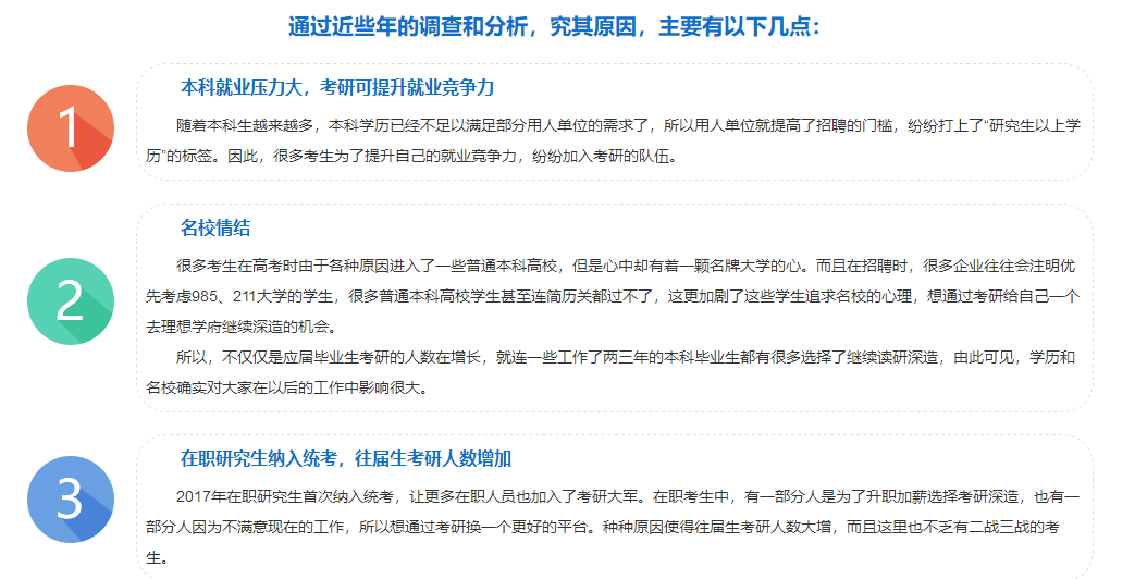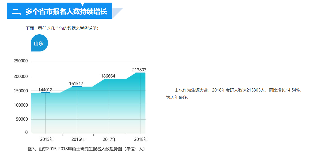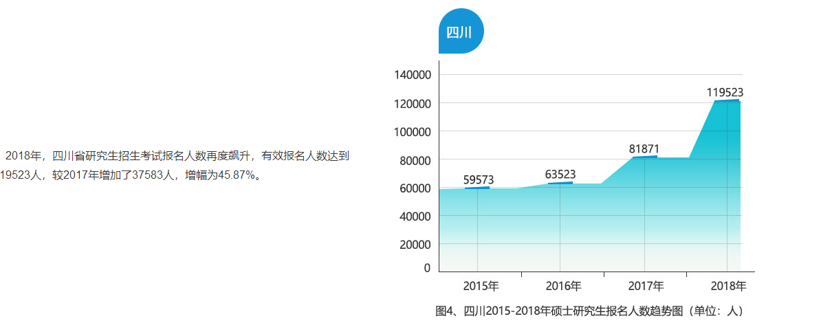 以上是聚创考研网为考生整理的"重磅!研招网2015-2018年全国硕士研究生报考数据分析报告出炉!"的相关考研信息,希望对大家考研备考有所帮助! 备考过程中如有疑问,也可以添加老师微信juchuang911进行咨询。