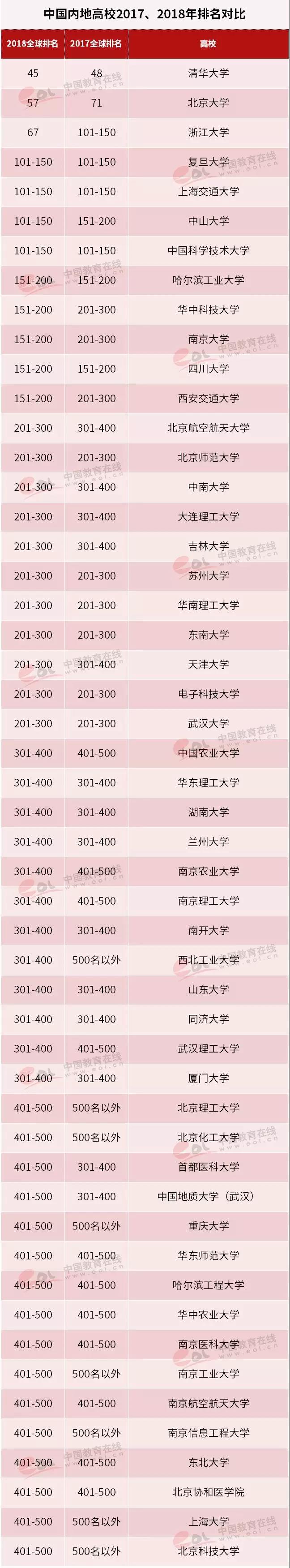 今年中国内地共有51所高校上榜,较去年增加6所。清华大学在中国内地排名最高,位列全球第45名。北京大学从去年的71名上升至今年的57名。