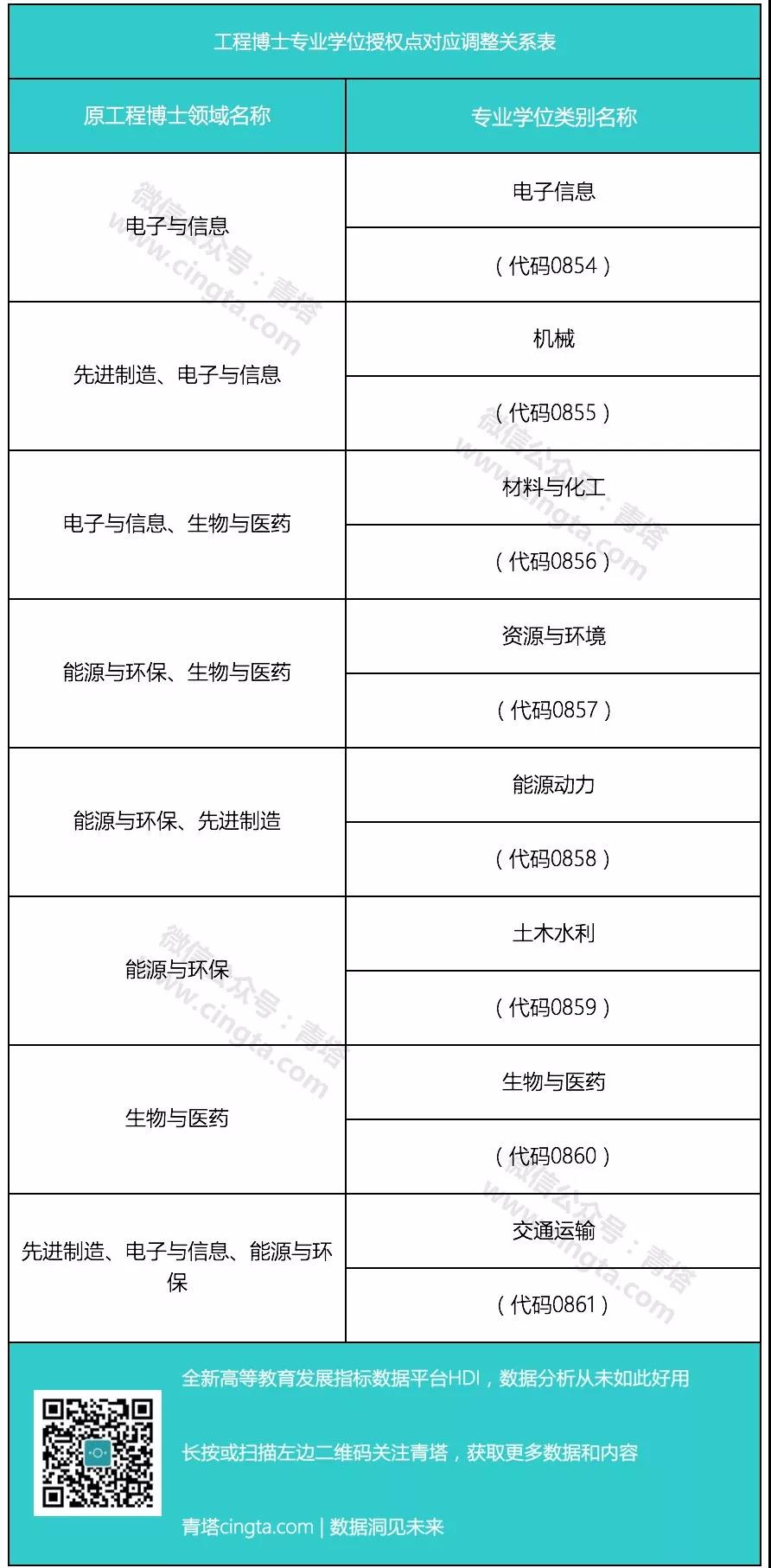 根据此前发布的《国务院学位委员会、教育部关于对工程专业学位类别进行调整的通知》,工程硕士、工程博士研究生2018、2019年按调整前的工程领域进行招生、培养、学位授予。2020年起,按调整后的专业学位类别进行招生、培养和学位授予。