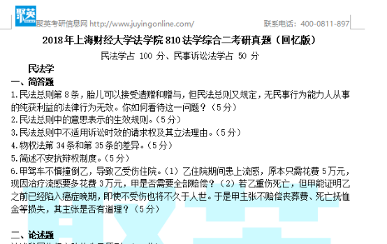 附件内容包含:2018年上海财经大学810法学综合二考研真题(回忆版).pdf