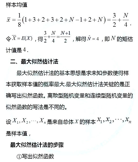 其实考研数学中矩估计和最大似然估计的解题思路是非常固定的,考生只要掌握住思路了,这些题就可以拿到满分.