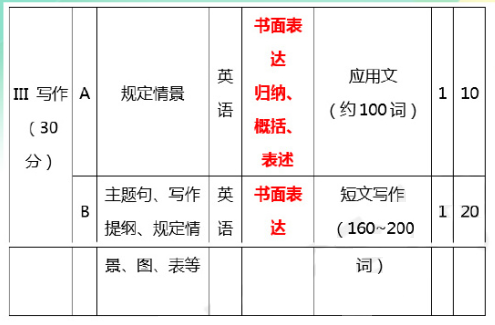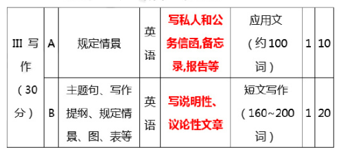 2.大作文部分明确规定了写作的核心体裁。