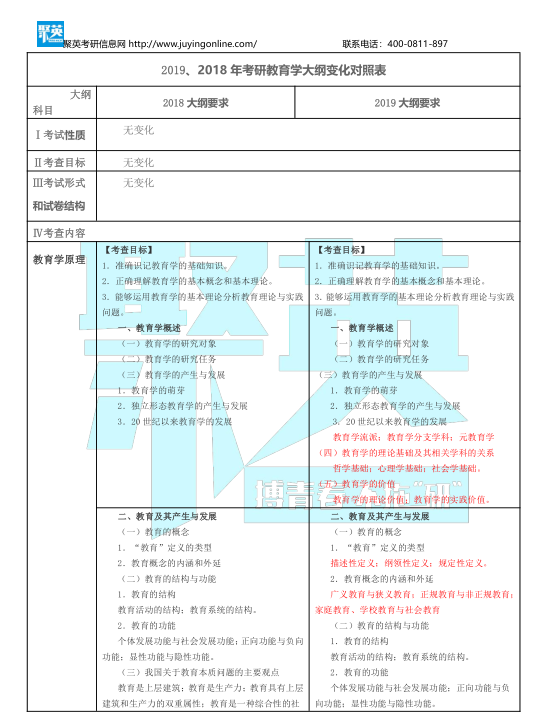 更多对比信息请点击链接下载附件查看:2019、2018年考研教育学大纲变化对照表
