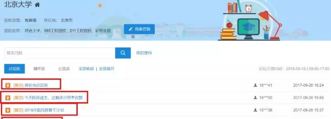 大多数院校已经将咨询时间公布,需要注意的是:咨询周并不是说该学校在线咨询窗口会开放一周,而是在这一周的其中几天,3天或5天或1天都有,咨询的开放时间段也各不相同,比如北大,只开放19日一天时间,从上午9:00--下午17:00。
