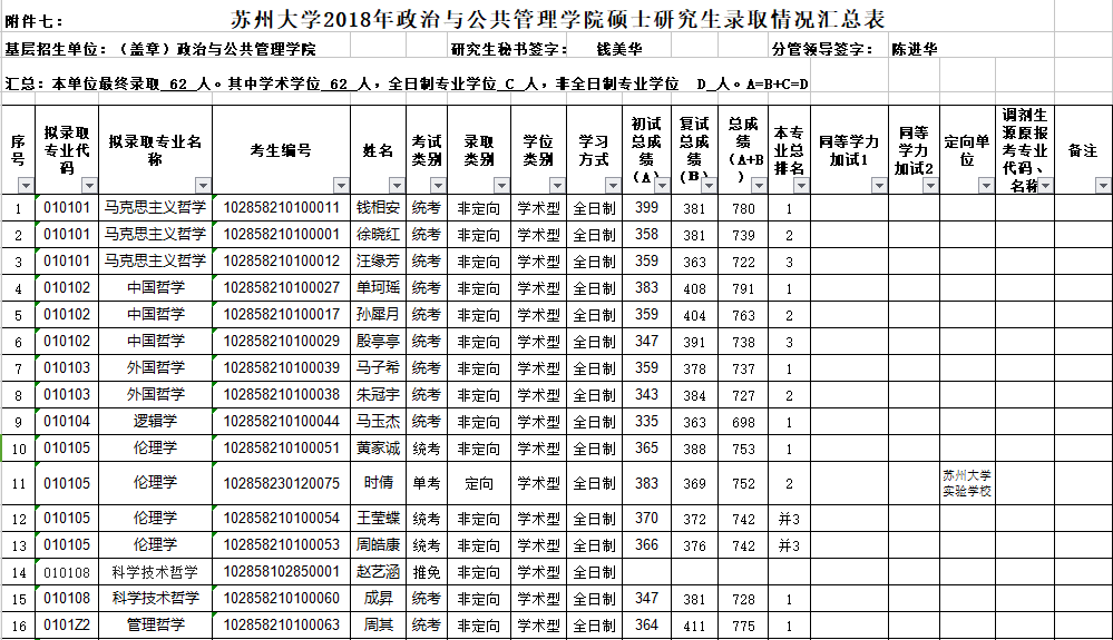 据悉,2018年苏州大学政治与公共管理学院硕士研究生拟录取名单公示已经公布,聚英苏州大学考研网为您整理如下: