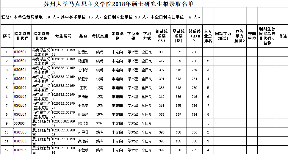 据悉,苏州大学马克思主义学院2018年硕士研究生拟录取名单已公布, 聚英苏州大学考研网小编为大家整理内容如下: