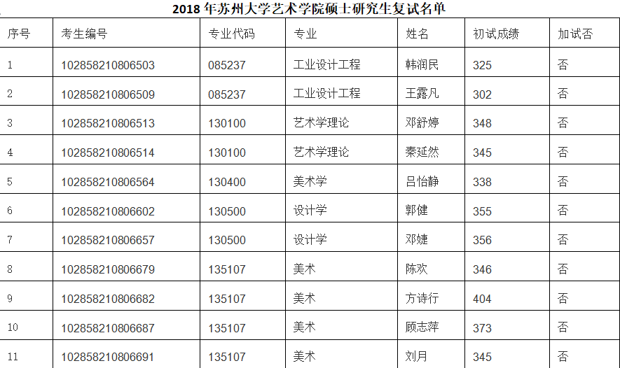 以上是聚创考研网为考生整理的"2018年苏州大学艺术学院硕士研究生复试名单"的相关考研信息,希望对大家考研备考有所帮助!